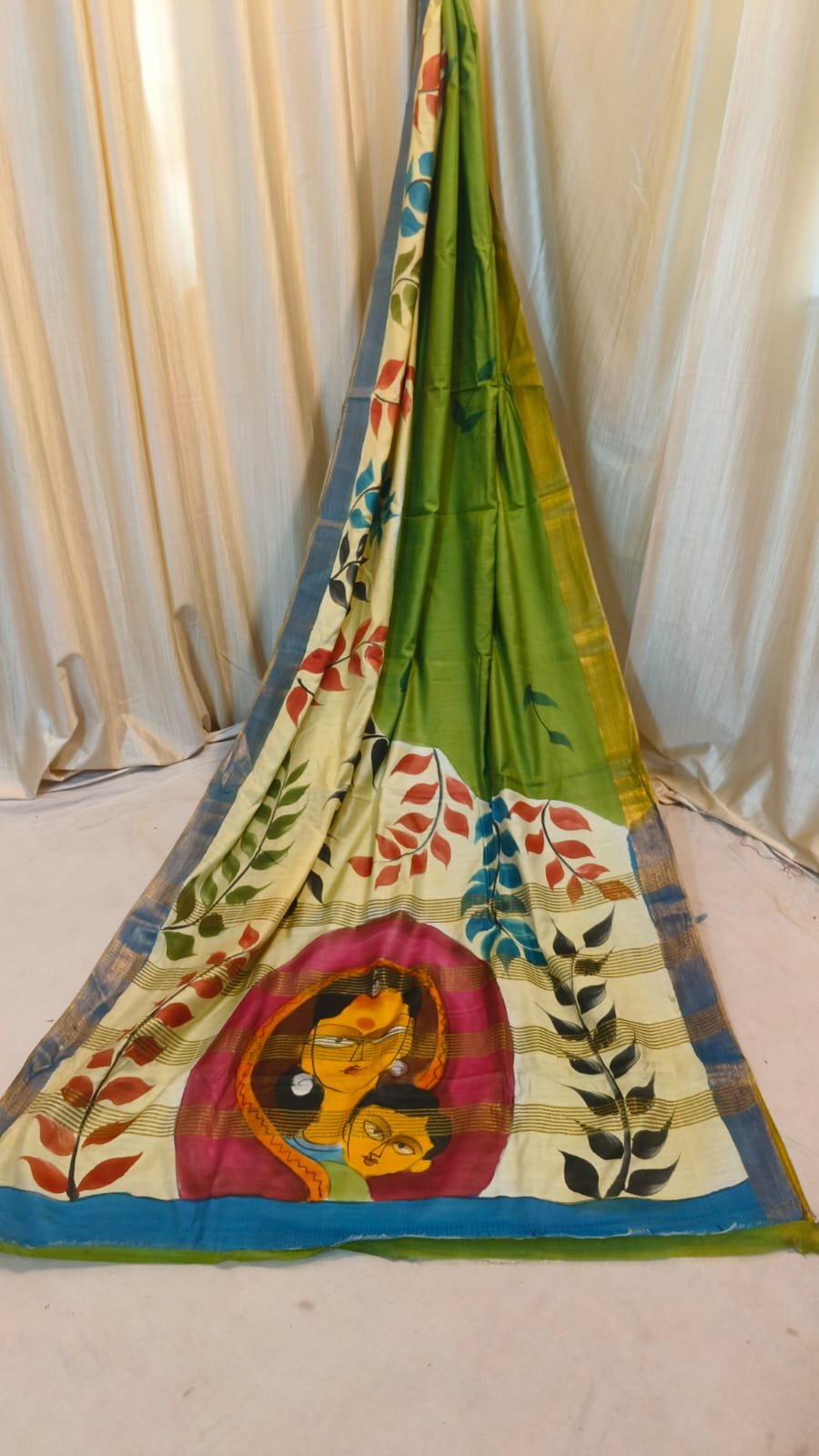 - Artistic Hand-Block Printed Flower and Leafs Motifs.