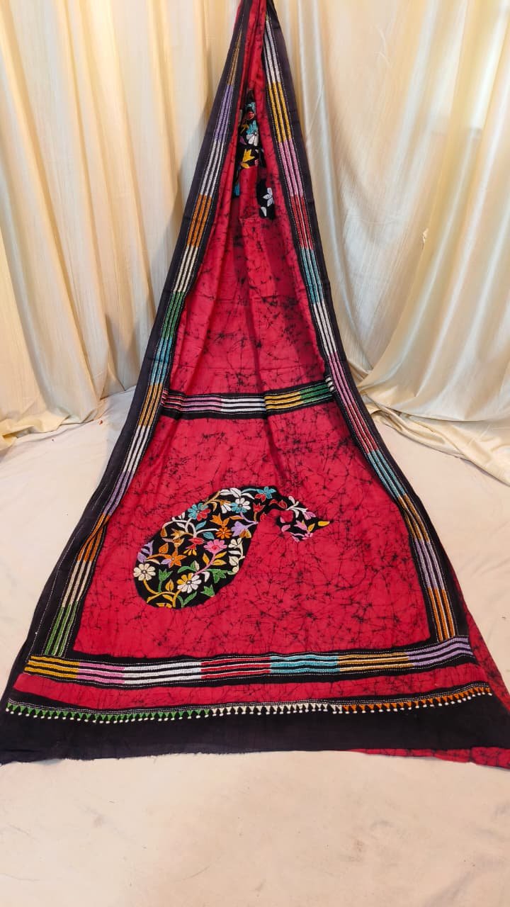 Aam Kalka Design Batik Kantha Handstitch Saree